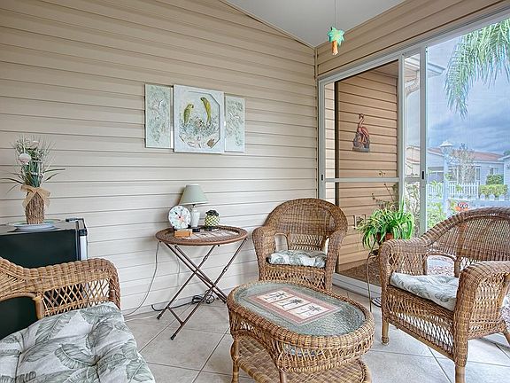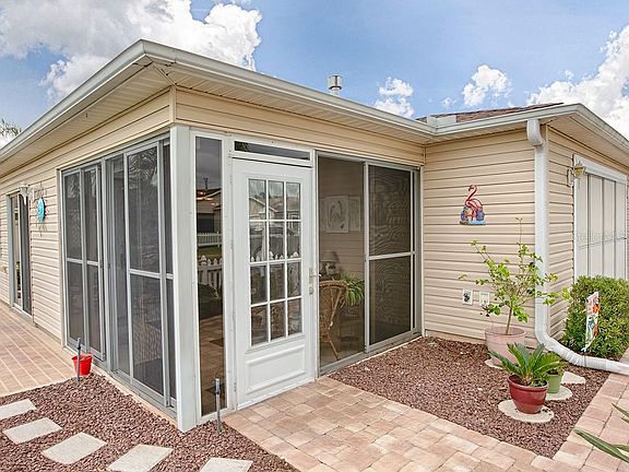 This ADORABLE 2/2 PATIO VILLA in the OAK BEND VILLAS is situated on a LARGE CORNER LOT in The Village of TALL TREES! This home says "WELCOME" from the moment you arrive at curbside with paver drive and walkway, curbed landscaping, even a flagpole! Enter through the ENCLOSED LANAI and the gorgeous LEADED STAINED GLASS glass front door! Inside, you're immediately greeted by diagonal tile, vaulted ceilings, plantation shutters & an open, airy Living/Dining/Kitchen area! Notice the sliding glass doors off the dining room that add lots of natural light to this space leading to your private side grilling/entertaining patio! The kitchen features new WRAP AROUND OAK CABINETS with pullouts, hardware, DOUBLE PANTRY and glass front cabinets PLUS a lazy Susan! There are bisque appliances and a GAS range! Enjoy the casual dining/conversation space at the BREAKFAST BAR with a TILE FRONT - plus room for more intimate dining in the dining room. A convenient laundry area is tucked away behind louver doors w/upper cabinets for the essentials PLUS there's a PANTRY CLOSET and door to the garage w/room for your car and golf-cart w/pull down attic and a utility sink. The Master bedroom features a walk-in closet and en-suite bathroom with tile surround Shower. The Guest bedroom has a double closet w/guest bath and linen closet in the hallway. This darling home also features a NEWER HVAC system, solar tubes, screened garage and upgraded lighting! This LOVELY UPGRADED VILLA is just waiting for you to claim it as "YOURS!"