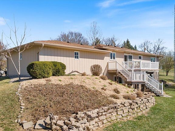 Exceptionally clean and well kept FIVE bedroom ranch home sitting on 1.43 acres in the Lewis Central School District with low county taxes. The main floor features laminate flooring throughout, primary bedroom with en-suite including all new tile surround shower, luxury vinyl flooring vanity and fixtures. 2 other bedrooms, a full bath that has also been completely updated, living room and eat in kitchen. Basement offers 2 additional bedrooms, full bath, laundry and family room. Outside you will love the quiet setting all on paved roads. Composite deck overlooks the acreage with beautiful sunsets. Don't miss your opportunity to own an affordable acreage with newer windows and mechanicals!