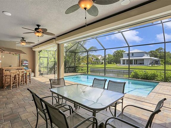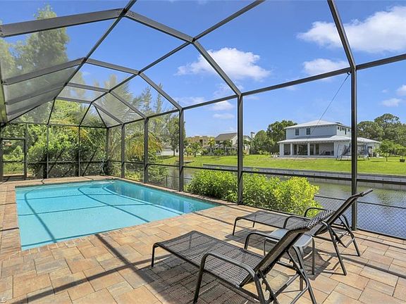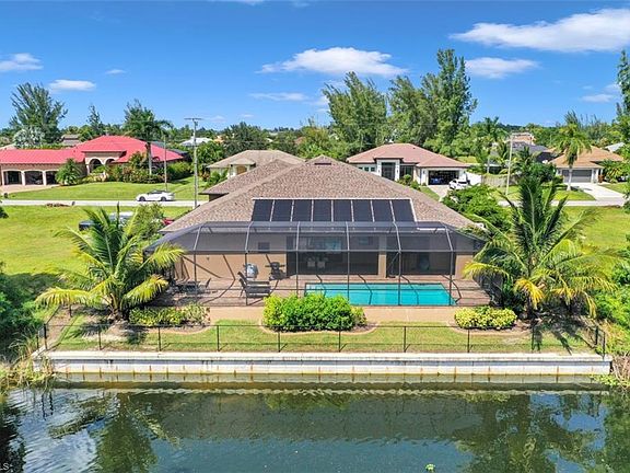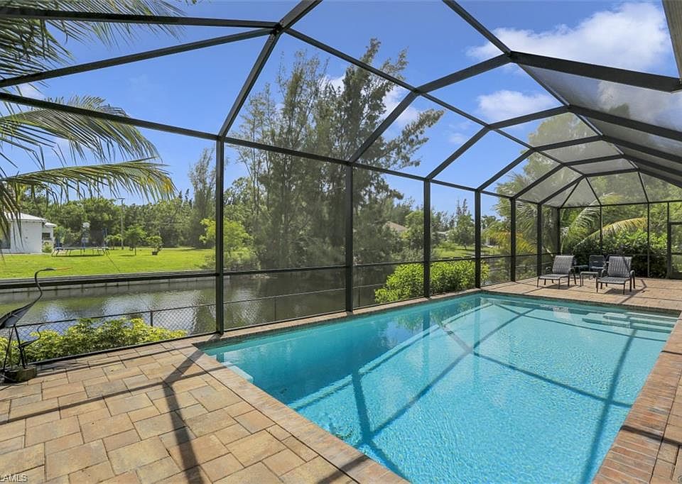 Custom SW Cape Coral Waterfront Pool loaded with High-End finishes throughout. Featuring a coastal modern open concept floorplan with 3 beds + den 2.5 baths & huge over-sized garage. Fully equipped home theater room, wet bar, and high coffered ceilings throughout. Chef's & Entertainers kitchen with Subzero fridge & gas Viking appliances! Handpicked Quartz counters, back-splash and custom cabinetry open up to a large dining area. Owner's suite with tray ceiling, lighting and coastal resort bath with walk-in shower & clawfoot tub. Generously appointed spare bedrooms & baths. Huge living room & over-sized laundry. Travertine throughout, pool bath, seawall on the canal, and hurricane impact & insulated windows & doors + roll shutters on lanai. Waterfront paver pool deck spans the length of the house! Lots of outdoor space to entertain, relax, or enjoy a beautiful pool overlooking the freshwater canal! Collectors & Boaters - built to store a boat insulated & AC garage w/ epoxy flooring 33ft deep 21ft wide with a 10ft door (normal is 8) & 13ft ceilings! Several boat ramps close by! Why go new construction? Home cannot be built for this price & you will wait a year before it is finished!