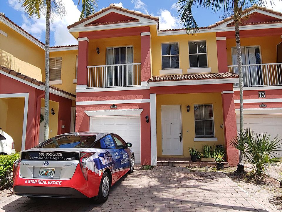 Two storey villa in desirable shoma homes development of Wellington with "A" rated school district. This is most popular floor plan with 3 bedrooms & 3 full bathrooms with split bedroom floor plan ( no bedrooms share walls): one bedroom & bathroom is downtsiats and two other, including master bedroom, upstairs. Open kitchen concept next to the living area, also there is a formal dining room & sitting or family room with cathedral ceilings right by the entrance. Master bedroom features double French door entry, voulted ceilings, two walk in closets: hers & his. Master bathroom offers a Roman tub, double sinks & window to allow more natural lights in. This home is tight across community swimming pool. Development is within a walking distance to publix shopping plaza, 2.5 miles from wellington mall & hospital, next to multiple gyms, restaurants, parks, etc Pictures are coming soon! Trash removal is inluded in rent