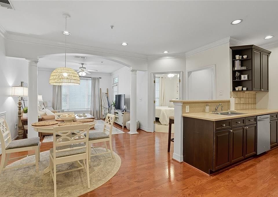 Welcome to this light-filled two bed, one bath corner condo tucked into one of the most private locations in the sought-after Stratford on North Decatur. With its open, airy floor plan and serene setting, this home offers the perfect blend of comfort and convenience. This unit is ready to welcome its next owner with over $10,000 of upgrades including fresh paint, a new dish washer, and a recently replaced HVAC. Just minutes from Downtown Decatur, residents enjoy easy access to shopping, dining, Emory, CDC, and all major commuting routes while still benefiting from the tranquility and security of a gated community. Step inside to find a welcoming foyer with custom built-ins that flows into the open living and dining area. A covered patio, accessible from both the living room and the primary suite, extends your living space outdoors. The primary suite features a walk-in closet, natural light, and a spacious en-suite bath with double vanities, bathtub, and separate shower. A secondary bedroom offers versatility as a guest room, home office, or both. The kitchen overlooks the main living space, making it ideal for entertaining. This residence also includes one dedicated covered parking space and an additional storage closet. Community amenities include a newly renovated pool, fitness center, and green space perfect for walking your dog.
