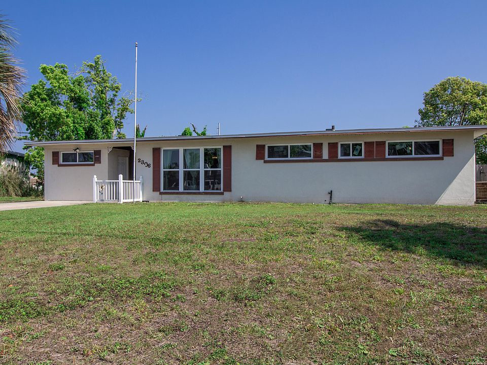 Check out this classic Florida cottage in the family oriented central neighborhood of Hentz. Perfect for a new young family who needs lots of space and bedrooms. This 2,156 square foot 4 bedroom home is built with CBS construction, has a new roof replaced in 2019, $5,000 of new plumbing, new double paned windows and doors in 2020 and a new master bath. Owner has fixed up the kitchen with unique distressed hardwood look on walls and timeless and stylish terrazzo floors in living room. There is a large backyard with firepit and great for the kids to play with large lot size of just under .3 acres. There is a bonus large Florida room that is under air as well as a converted garage into a possible extra bedroom. Close to shopping entertainment and beaches.