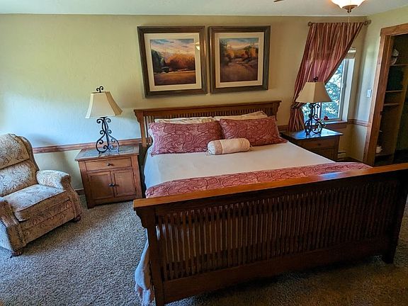 STUNNING VIEWS OF KEYSTONE SLOPES! Welcome to this beautiful 2-story, 2 Bedroom, 2 Bathroom penthouse in the heart of Keystone! The main level has a nice open layout with gorgeous panoramic views. The Kitchen features granite-slab countertops with decorative tile backsplash, tile floors, stainless-steel appliances, and pendant lighting over a peninsula island with breakfast bar seating x2 that backs to the dining area. Relax in front of the cozy wood-burning fireplace with stone surround and vaulted ceiling. Follow the spiral staircase to the loft where you will find 2 twin beds each with a trundle underneath (sleeps 4), and a foosball table for the kids to enjoy. The Primary Suite features a private bathroom with a walk-in shower, dual sinks, and a walk-in closet. RARE OPPORTUNITY to soak in your PRIVATE HOT TUB while you watch the snow fall on the lit slopes after a day’s skiing! Or enjoy a beautiful summers day grilling on the deck looking out on the Snake river, protected wetlands, and the ski slopes. The unit comes Fully-Furnished! These units do not come on the market very often, and is a must see. Call now to schedule your private showing before it is gone!