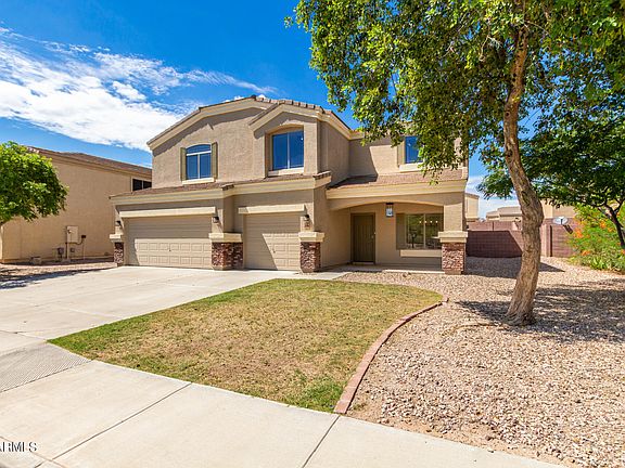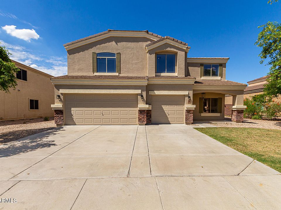 Don't miss this fully updated oversized home in Buckeye! 3,784sqft offering 6 bedrooms & 4 bathrooms with a three-car garage, bedroom & full bathroom on main level. Updated throughout with new LVP floors & baseboards, new interior & exterior paint & new carpet. Step into your beautiful open designer kitchen with all new cabinets, quartz counters, backsplash, floating shelves, & stainless steel appliances featuring a 36inch oven! There are six bedrooms, one downstairs with a full bath & five upstairs with three full bathrooms with double vanities. Walk into your large primary suite with dual vanities, a walk-in shower, & a walk-in closet! Another large bedroom upstairs is perfect for an entertainment room or office. This home was finished with all new designer fixtures and stands out!