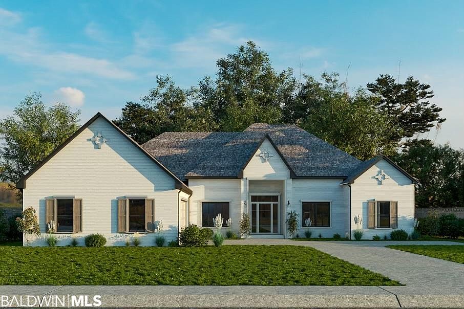 Welcome to Lakeview Estates, a desirable Foley neighborhood within the Glenlakes golf course community. Glenlakes Golf Club is widely regarded as one of the Alabama Gulf Coast's premier golf courses and features 27 holes of unforgettable golf. Not only do residents of Lakeview Estates have private access to Lake Muriel, but the white sandy beaches are just a short drive away! The details and upgrades in this new construction home are going to be stunning. Great curb appeal with painted brick on the front of the home and board and batten on the sides and back of the home. The cypress shutters and hardy board on the porch ceilings and soffits will also add a nice touch. Natural wood beams and a ventless fireplace in the living area, coffered ceilings and crown molding in the dining area, luxury vinyl plank flooring, and beautiful quartz countertops throughout. The master bathroom will have a large walk-in closet, free standing tub, and a tiled shower. The guest bathrooms will have tub/shower combos with tile surround. There will also be a Ring door bell with Smart lighting in the front, as well as a Smart thermostat. All photos are renderings. Some finishes and products could possibly change due to supply availability. Note: Social and golf memberships are available at an additional cost and are separate from the HOA dues.