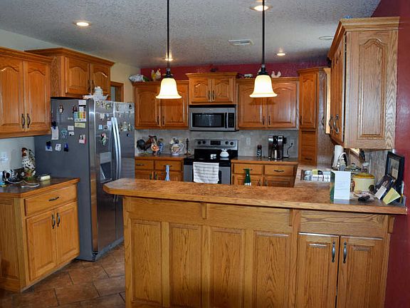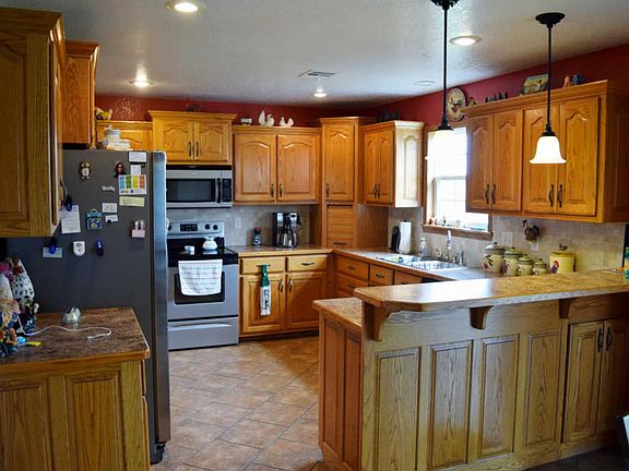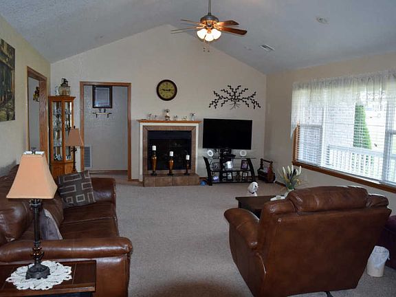 Pristine condition, Large Kitchen with ample cabinets and nice appliances open to Living room and sun room. Split bedroom plan. Good size Master bedroom. Sun room opens to patio with privacy provided by 24 x 24 shop building. Completely fenced back yard. Roof replaced 2012 New efficient H/A system installed 2014. All this on one acre of yardStorm shelter in garage.