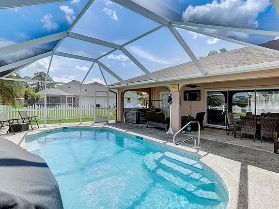 Desirable Sec 15 pool home on oversized corner lot NOT in flood zone. A double front entry welcomes you to this lovely 3 bedroom split floor plan home. The great room looks out to the pool area with volume ceilings and a triple pocket slider out to the large lanai and pool area. The large kitchen is a chefs dream with stainless steal appliances, tons of counter space, large breakfast bar and large dining area looking out to lanai and pool. The guest bedrooms and bath have a pocket slider that can shut off the whole guest wing for that extra privacy. Both guest bedrooms have nice size walk in closets and the second guest room has slider out to the Lanai and pool area. On the opposite side of the home is the generous master suite with French doors leading out to the Lanai area. The Master bath features a large garden tub, separate shower and his & her vanities. The outside area is just as lovely as the inside with a large lanai, pool and hot tub. The pool is a heated salt water pool for use all year around and the yard is fully fenced for those furry friends. The greatest plus is the extra driveway for parking that boat or small RV. There is also a shed for extra storage. This home also features Monobloc plumbing and Impact windows. Make sure to put this home on the top of the list, you wont' be disappointed! Be sure to see the 3D tour attached to this listing.