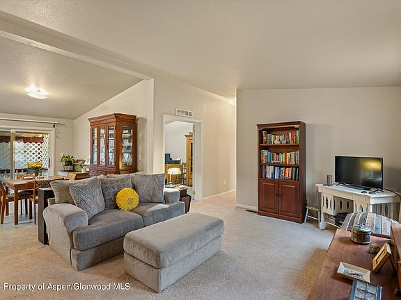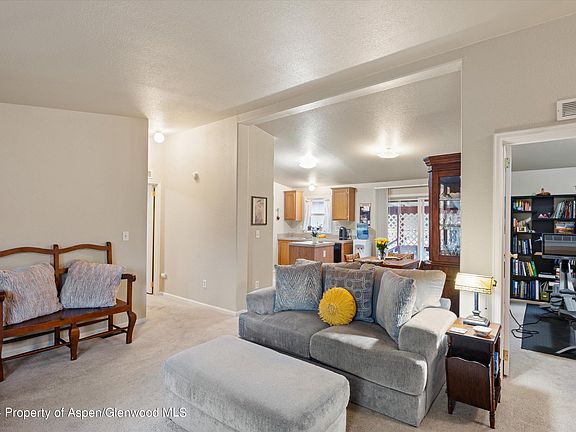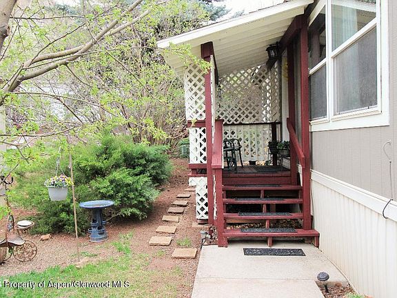 It is rare to find a home in this little known hidden gem of a manufactured home park that banks on the Roaring Fork River with a great mid valley location less than 2 miles from south Glenwood Springs. Fantastic location for commuting up valley. The seller is going to miss the great neighbors in this small quiet community as well as the neighboring Bald Eagles, Osprey, River Otters and other fun wildlife that are attracted to the river. This is your turn to start living in this 3 bedroom, 2 full bath, plus a bonus room for an office, sewing room, exercise or what ever you need the extra space for in this 1377 square foot double wide 2002 manufacture home with a lovely yard. There is also a large storage shed with an easy to pull up / down rolling access door for storing all your extra treasures and maybe a bicycle too for using on the nearby Rio Grande bike & hiking trail. The exterior of the home was painted near the end of last summer. Recently replaced are the stacked washer and dryer, hot water heater, kitchen sink, garbage disposal, along with a gently used dishwasher. The El Rocko space rent of $750 includes the water, sewer, trash and outside water for the lawn. Park approval is required for the Buyer and please know that the park doesn't allow dogs. The non-attached pantry next to the washer and dryer is included along with a small window ac unit. Schedule your private showing soon!