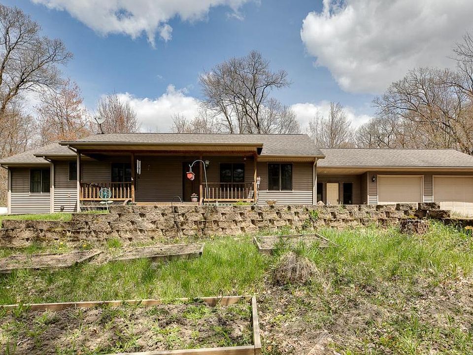 Enjoy this beautiful custom built home, nestled in the woods on almost 5 acres of hunting land! There is a great 25x40 outbuilding to house all the toys! All living needs on the main level, with a newly finished lower level for you to enjoy! The main level bedrooms each have large walk-in closets. Watch nature right off your maintenance free deck! Enjoy this beautiful wooded lot, with flowering crab apple trees and large front yard for gardening and games! The stove in the family room is corn or pellet burning, and can be used for supplemental heating. Make this lovingly cared for home yours today!
