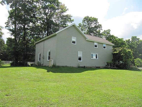 Nearly 9 acre mix of open hayfields, white spruce wind breaks and walking trails. Fruit trees, wild flower and vegatable gardens surround the property for a sustainable lifestyle. The large country kitchen and coal stove hearth is the center point of the home. Extra large entry with a walkin pantry, storage space and laundry. Master bedroom is also oversized with a second story deck. There's also a deck tucked underneath. Great place for a sunset and time to appreciate all this property has to offer. Located 15 minutes from Syracuse. Short scenic drives to Wine trails, Beak and Skiff, Song Mt, golf courses and Otisco Lake. New Spectrum high speed internet, phone and cable available.