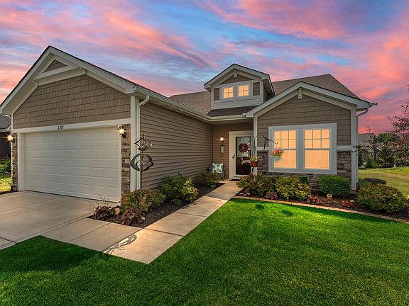 Welcome to Pepper Cove! This charming 3-bedroom, 2-bath ranch home offers an open-concept design perfect for modern living. The layout begins with a welcoming foyer that leads into a versatile flex room, ideal as a sitting room, office, or extra bedroom.The kitchen, equipped with stylish cabinetry and quality countertops, seamlessly flows into the dining and living areas. Large windows and ample canned lighting brighten these spaces with natural light. From the dining area, step out onto your private paved patio, perfect for outdoor relaxation.The primary bedroom boasts an ensuite with a walk-in shower and a generously sized walk-in closet. A second bedroom, a finished laundry/mudroom, and a 2-car garage complete this delightful home.Enjoy maintenance-free living with HOA benefits that includes landscaping, grounds maintenance, and snow removal. Located in desirable Valparaiso, this property is conveniently close to everything the area has to offer. This home is ready to move right in!