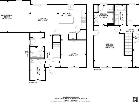 The first floor also features a formal dining room currently used as an office, a convenient laundry, and a guest bath. On the 2nd floor, you will find 3 bedrooms and 2 full bathrooms, including a master suite with a sitting area and a full bath complete with a double sink vanity and an awesome closet.