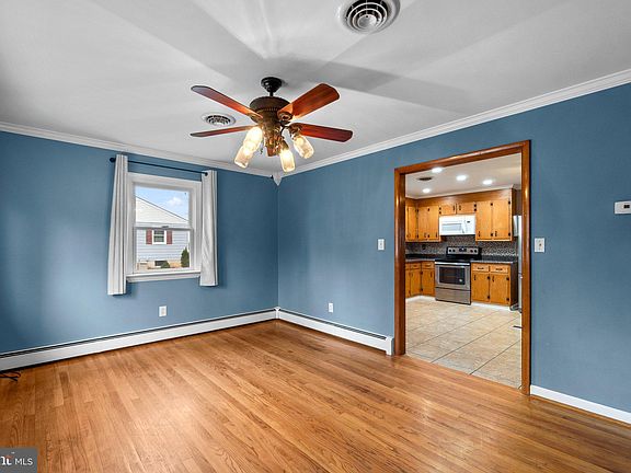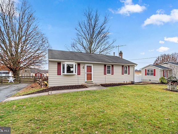 Enter this ranch-style home through a charming living room with a large window that leads to the eat-in kitchen featuring solid wood cabinets, recessed lighting and updated stainless steel appliances. The mudroom is adjacent to the kitchen offering a tile floor, half bath and access to rear yard making a practical space for shedding dirty shoes and outerwear before entering the house. Two upper lever bedrooms with the primary bedroom featuring an upgraded bathroom with soft lighting, beautiful tile work and walk-in closet. Basement features a finished clubroom area, separate room, large storage room, wood stove and walk-up stairway. The fenced-in yard offers a beautiful outdoor space with chicken coop and deck overlooking Baugher's fields providing both privacy and relaxation for those beautiful days. Updates are windows in 2019, Roof approximately 10 years old & electric.