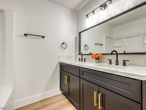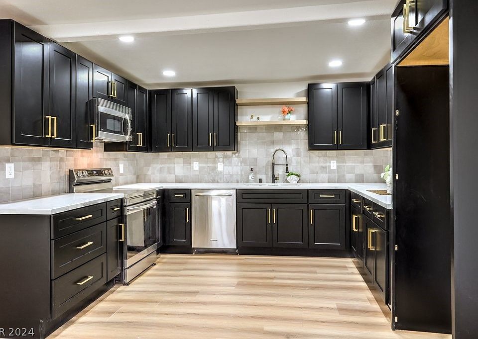Welcome to this fully upgraded property, featuring 3 bedrooms and 2 bathrooms. The kitchen is a standout with quartz countertops, stainless steel appliances, and black shaker cabinets with soft-closing mechanisms. Freshly painted, the house showcases 5-inch baseboards and luxurious vinyl plank (LVP) flooring throughout.