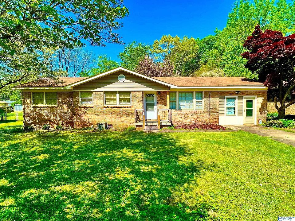 3bed/2bath home has everything you need & prime location! The home has hardwood floors in the living room & bedrooms. The den & bonus room have carpet. The den has the perfect view of your backyard with covered porch. Walk out the beautiful French doors into your nice large back yard. Everything from the amazing porch to the many perennials plants and mature trees all surrounded by chain link fencing. 3/4 Brick home has new vinyl siding. Water heater 5 yrs old. All new plumbing. The 12x24 building in back yard remains. Property is 8 miles to Redstone Arsenal/6.4 miles to Toyota plant/4.1 miles to Huntsville Hospital. Sold as is, OPEN HOUSE 06/11/2022 1-4PM