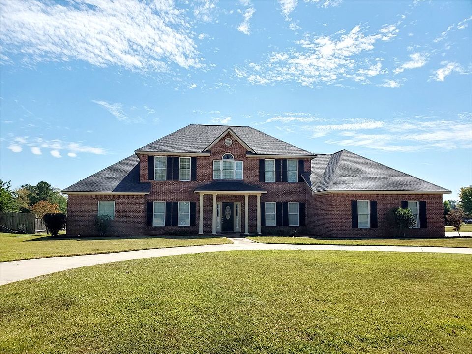 Prestigious four bedroom, three and one-half bath home on large lakefront lot in desirable, gated subdivision. Open floor plan is great for entertaining. Spacious two-story living room with fireplace and columns. Huge kitchen features an abundance of cabinet and granite counter space, large granite island, walk-in pantry and a butler pantry. Dining options include breakfast area, breakfast bar and a separate dining room. Second living area plus an office with built-in granite-top desk. Remote first floor owner suite with two walk-in closets and an ensuite bathroom with soaking tub, separate shower & double vanities. Second floor landing overlooks living room and foyer. Laundry room with sink and space for additional refrigerator and freezer. Enjoy your large backyard and lakefront view from your patio with pergola. Three car side-entry garage with heated & cooled workshop. Large driveway plus a circular driveway for extra parking. New roof August 2022!