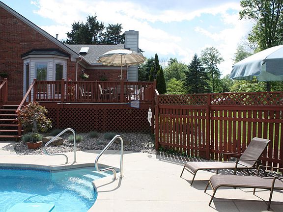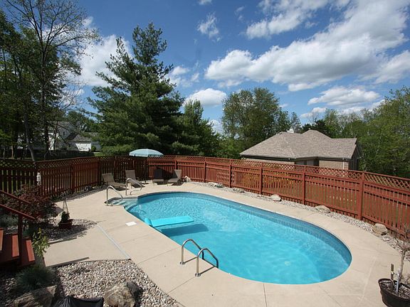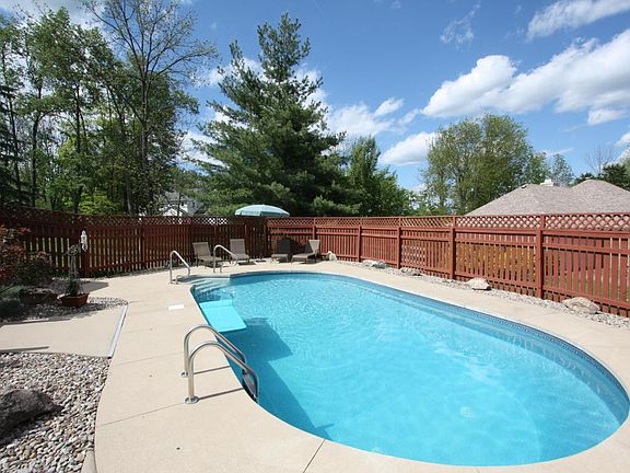 You won't need a vacation when you have this sprawling brick ranch on 1.2 flat acres only minutes to I71, dining, shopping & schools! Enjoy your favorite beverage on the front porch or expansive deck overlooking the inground pool with heater. (Approx 15x30-3'-6' deep). Family memories to last a lifetime can be had here. The flat back yard is meant for playtime activities. Inside you'll find an inviting foyer that opens to the formal dining room with hardwood flooring. The HUGE vaulted great room has low maintenance gas logs in the fireplace (could be woodburning), plenty of windows for lots of natural light and a built in book case. The eat in kitchen has a center island work station, peninsula bar top, solid surface counter top, bayed nook area and a pantry. The generous