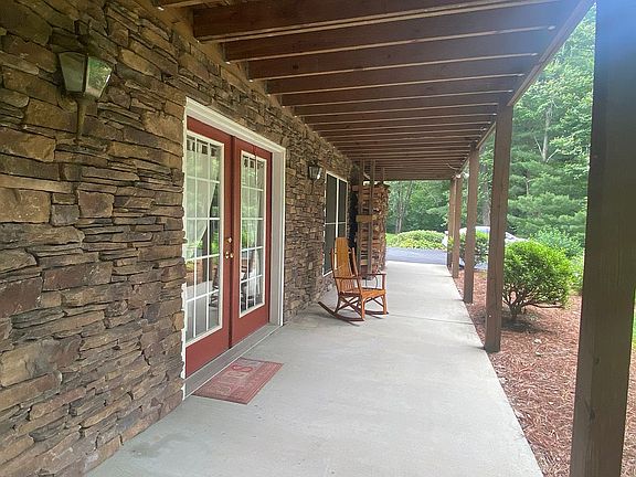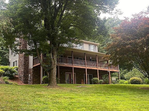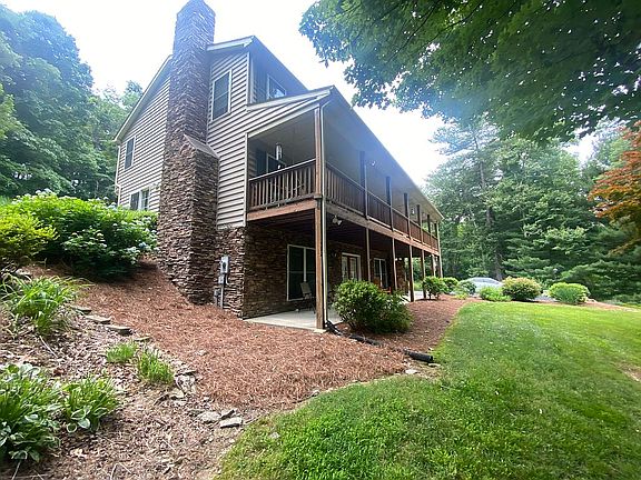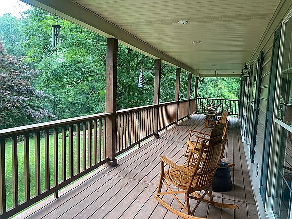 Best described as private, relaxing, peaceful, lodge like, and rustic this home offers in-law potential, multi-generation living, and plenty of flex space. Surrounded by woods this home is situated on 3 acres and was built based on southern floor plan which influenced the design of the double wrap around covered porches. The kitchen offers slate appliances, Corian counters, breakfast bar and is open to the dining area and family room. Main level mudroom with potting sink also has hook up for washer and dryer and could easily be converted back if desired. Large main level bedroom also perfect for a playroom, den, etc and has a full bath just outside the room. Upper level has 5 true bedrooms of which the primary suite could easily have a private office or nursery due to layout. Primary ensuite has vintage claw foot tub from the early 1900s and a transom window. Hall bath offers dual sinks one with separate access for easy sharing. Upper level hallway offers great space for reading or to make a homework station. Lower level has 7th bedroom with large windows, walk-in closet, and spacious ensuite- also perfect for a rec room. In addition the walk-out lower level has a galley kitchenette with sink and fridge and french doors that lead to one of the two driveways creating a perfect layout for an in-law need. Quaint pea gravel patio is the perfect spot to relax. Home offers beautiful landscape with hydrangeas and southern style straw for "mulch". Detached 2 car garage with additional tandem bay. Plenty of parking due to how driveway splits off in to 2 areas. Additional features include random width hardwood floors, stacked stone wood burning fireplace with flagstone hearth and chestnut beam mantle from an old barn, pine craftsman style trim detail throughout, partial stone exterior, bead siding, fire pit area, new roof 2021, dual zone HVAC, heat pump with oil back up for cold winter days (main and basement unit), hot water heater 2019, wired for generator. This home is sure to impress and is a rare opportunity!!