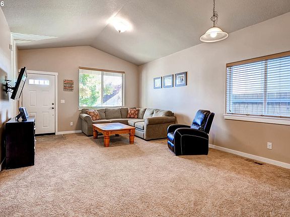 Hard to find 1-level with 3 bedrooms, 2 baths andopen floor plan. Brand new carpet and paint throughout the entire home! Home has lots storage, Vaulted ceilings w/ spacious kitchen & S/S appliances. Covered front porch, great room floor plan, tiled counters in kitchen & baths! Energy Star Home, and no HOA's! Garage has nice cupboards for lots of extra storage. Room for boat, trailer or small vehicles on side of home! Fenced yard.