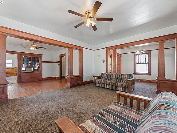 Charming property with a lot of character! Baker City, Oregon, has a rich history, and owning this home here, especially a vintage one from 1920, would feel like being a part of history. New Roof July 2024! Hardwood floors add a timeless elegance, with 3 bedrooms and 2 bathrooms and original woodwork throughout the house. The ramp to the front door for accessibility, and a single garage and a full unfinished basement offers plenty of storage options or potential for expansion. Overall, a cozy home in downtown Baker City!