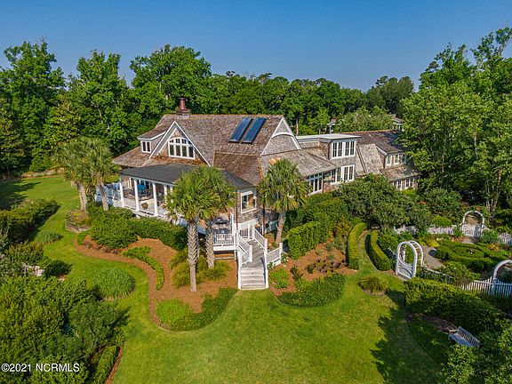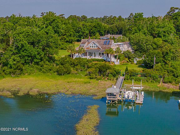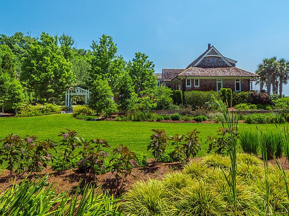 This Shingle Style masterpiece is set on a 4+ acre gated estate with 149 feet of water frontage overlooking the ICWW and Atlantic Ocean beyond. Garden paths wind through the extensive, lovely, four-season blooming landscape with moss-draped live oaks, arbors, and rain gardens. Designed by architect Cothran Harris and built by Telesis Ventures, precision craftsmanship can be found in every detail. The private and protected pier and 3 slip boat dock with 2 lifts provide the perfect launching point for days spent boating in the ocean or exploring the nearby pristine beaches and sand bars. The house offers the very best of finish quality with no expense spared or detail overlooked. Features include reclaimed Heart Pine floors throughout, radiant heat in bathrooms, copper gutters, Marvin Integrity impact glass windows and doors, generator, cedar shake siding and roof, Ipe decking, closed-cell foam insulation, deep water well for irrigation, whole-house audio system. The kitchen boasts double Thermador ovens, Viking range, Viking grill and Sub-Zero refrigerator. Spectacular indoor and outdoor living spaces are perfected by breathtaking views of the Intracoastal, and Atlantic Ocean.