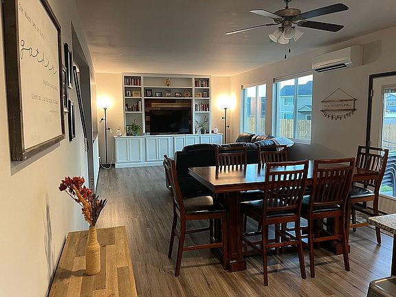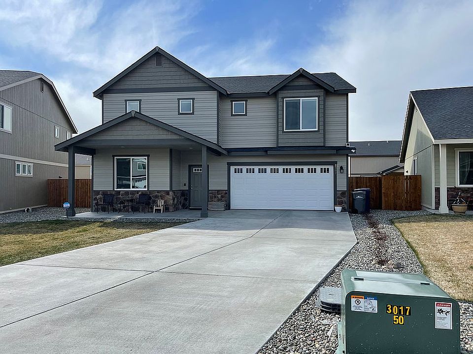Spacious newer home located in the highly sought after neighborhood of Currier Creek. Open concept floor plan on the first floor connecting living room and kitchen. Enjoy the custom built-in home entertainment center. Kitchen equipped with matching Whirlpool appliances and generous island capable of bar stool seating. Excellent closet space throughout home, including four shelf pantry and under-stair storage. Walk upstairs to find french doors opening up to bonus room with closet and beautiful accent wall. Large master bedroom, bathroom and closet. All bedroom blinds are blackout blinds. Ductless Mini-Split System keeps the home cool in the summer and toasty in the winter. Two car garage with two remote opener and built-in shelving. French doors open up to covered patio and backyard. Underground sprinkler system for front and backyard. Six privacy trees in the backyard. Contact Jen for showing and questions.