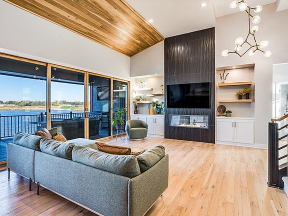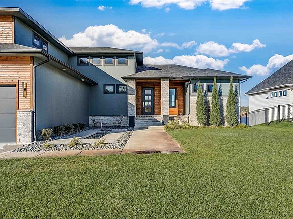 What an incredible opportunity to own this beautiful Mandalay Bonus Room plan right on the lake in beautiful Emerald Bay! This incredible custom home features three bedrooms 2.5 baths on the main floor, with bedrooms 2 and 3 each featuring a private lavatory, a walk-in closet, and access to the Jack and Jill bath. The incredible great room has vaulted ceilings with wood accents, a modern electric fireplace, and bi-parting doors leading to the 12’ x 20’ covered deck, with a gas fireplace, automatic screens, and a spot for a tv! And talk about a kitchen! This chef’s dream kitchen features a large butler’s pantry with an appliance counter, double ovens, a gas cook top and top-notch Cafe’ appliances! The private owner’s suite features a large bedroom, a walk-in shower, a spacious closet with seasonal hanging, and convenient access to the laundry room. This amazing home also features a finished space above the garage, to include a large kids hang out space, a large bedroom, and a full bath. The fully finished lower-level features two bedrooms with a Jack and Jill bath, a guest half bath, a large family room/game room, and a fully featured wet bar. The lower-level walks out at grade to a heated 18x39 saltwater in-ground pool, a hot tub, and an outdoor kitchen. Emerald Bay is a private boating lake designed for surfing, wakeboarding, water skiing, and jet skis, along with all of the non-motorized water sports as well! Enjoy a beautiful beach in your own backyard, with your own dock included! Start living life as it should be in beautiful Emerald Bay! Emerald Bay is in the city of Wichita and is located in the Maize South School District! Some information may be estimated, and is not guaranteed, please verify the schools with USD266.