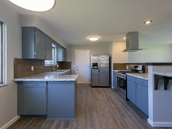 Newly renovated 4 bed, 2 bath home! Newly installed furnace and A/C. Completely updated bathrooms with subway tile surrounds! ALL NEW: floors, garage door, some exterior and interior doors, paint, kitchen countertops, and stainless steel appliances! This is a must see. Barn-wood backsplash and stainless steel vent hood in kitchen. Living room on main level and large family room on lower level. Ready to move in and immediate possession.