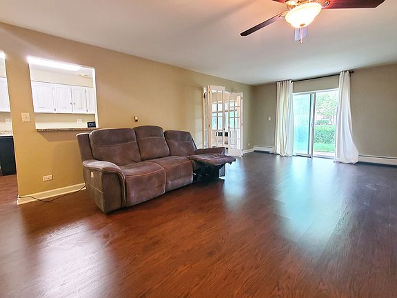 Beautiful First Floor unit with maintenance-free wood laminate flooring. 1 Bedroom PLUS french doors to a private study off of the living room. Kitchen has granite countertops and passthru-window to the dining room/living room. Sliders from the living room open to a private patio to enjoy the outdoors. The master bedroom has a generous walk-in closet and ceiling fan. The home has the convenience of an in-unit washer/dryer! Picture perfect and conveniently located for easy access to I90, 53/355. Only a few minutes away from Arlington Heights Metra station. Furniture in the home is included. Seller prefers 'AS IS'. HIGHEST & BEST May 15, 2023 at 9PM!