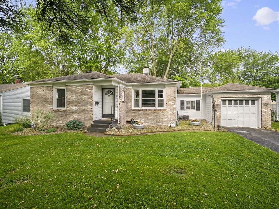 Cute, clean, and move-in ready best describes this 2 bedroom, 1 bathroom brick ranch located in Maple Crest Subdivision. This charming home offers a spacious living room/ dining room combo with arched doorways, nice hardwood floors & fresh paint. The efficiency kitchen offers plenty of cabinet space and appliances that remain. Also included is a separate breezeway/ utility room, as well as newer windows in most parts of the house. The partial basement has a newer perimeter drain/ sump pump that comes with a transferrable warranty. The one car attached garage and large fenced-in yard complete the package on this adorable and well maintained home. Agent is related to seller.