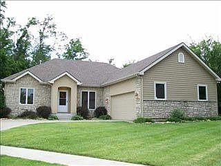 Beautiful ranch in woodsy Capricorn Woods. Like new (Blt '02) open with nice colors, great floor plan, gas fireplace. Kitchen has breakfast area, appliances stay, covered deck overlooks solid trees - very private feel. Finished basement with daylight windows. Family room, 4th bedroom & another bath. Nice curb appeal - stone & stucco & frame. 3.5 baths, high eff-furnace, inground sprinkler. Low utilities.