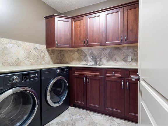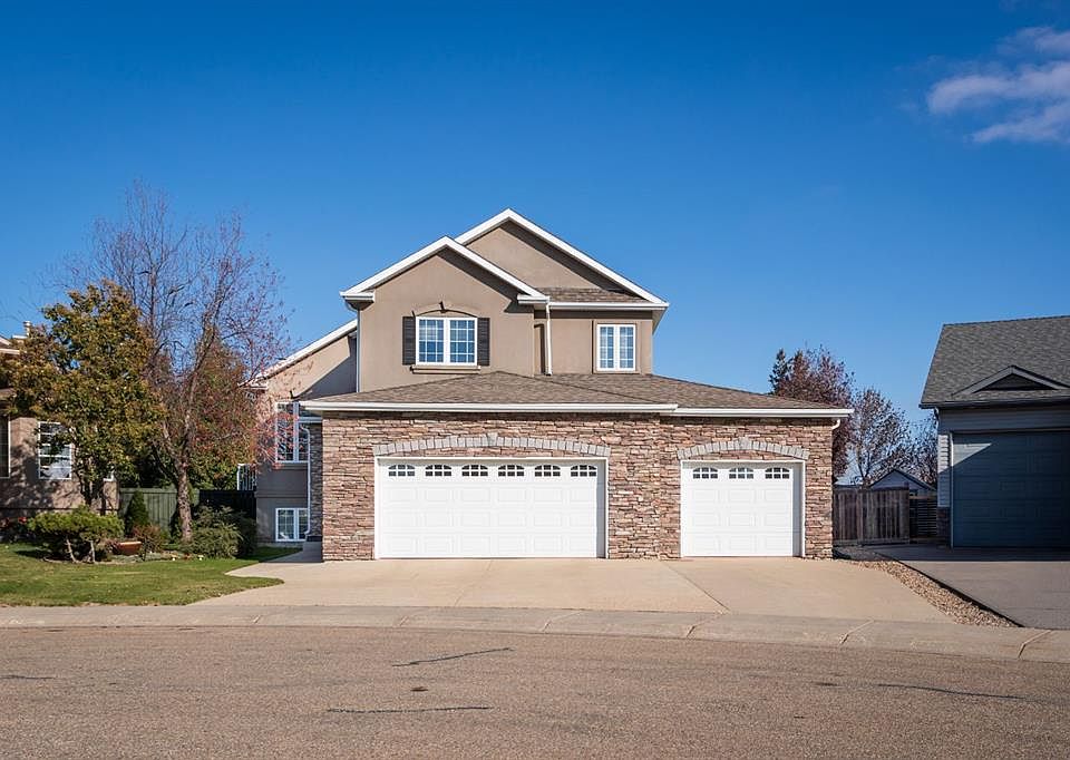 A Quiet Cul-de-Sac Home With Room to Settle In. There’s an easy feel to this home from the moment you pull onto the cul-de-sac — quiet, tucked away, and backing onto green space next to Lakeland College. It sits on a 0.3-acre pie-shaped lot, so you get privacy, mature trees, and a yard that gives you space to breathe. Inside, the layout works the way people want it to. The front entry is wide and welcoming, and the laundry room is right there on the level you walk in on. The main floor opens up with maple hardwood, a gas fireplace framed in custom cabinetry and a kitchen designed for real use: a big island, pantry, granite counters, stainless appliances, and a garden door out to that huge yard. Upstairs, the primary bedroom is its own comfortable space with an 80 sq. ft. walk-in closet and an ensuite that’s practical and well laid out — double sinks, corner tub, and glass shower. Downstairs is fully finished and set up for easy gathering, whether that’s movie nights or having friends over. There’s a second fireplace, more custom cabinetry, a dry bar with a wine fridge and room for the pool table (which can stay). Hot water on demand, central A/C and a storage-friendly utility room round it out. The triple heated garage (1000 sq feet!) gives you even more flexibility with its sink, counter space, and rear access. The double side is 25 feet deep while the single side is 32 feet deep with passthrough to the back yard. Five bedrooms, a standout yard and a neighbourhood people stay in for years — if this feels like a fit, reach out to arrange a viewing!