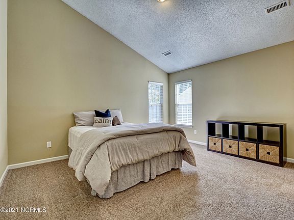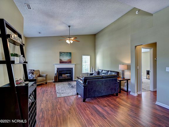 Don't miss this one story, 3 bedroom, 2 bath home located in the popular neighborhood of Meadowbrook in Ogden that looks like a model home. This property is in one of the most sought-after locations in Wilmington, near Wrightsville Beach, Mayfaire and UNCW. This home has a split floor plan with a large primary suite including a bathroom with new vanity, shower, tub and walk-in closet. The living room, kitchen and dining room are all open to one another and feel very spacious due to the vaulted ceilings and natural light. Bonus features include a fully fenced courtyard perfect for entertaining, wood burning fireplace, new LVP flooring in living areas, ceramic tiles in the bathrooms, and new carpet in the bedrooms. In the kitchen you'll find ample cabinet space and matching stainless steel appliances. You'll love the private backyard, which includes an exterior storage area attached to the home, and an 8x12 shed with upgraded flooring & shelving.