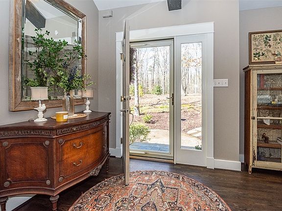 Gorgeous, quality-built home on 7 1/2 acres is a must see. Vaulted ceiling w/wood beams through the great room and bedrooms. The great room offers a large stone gas fireplace and a full wall of glass doors and windows leading to the deck and screen porch. Total bathroom renovations especially the primary bath has high end marble tile with doorless walk-in open shower and large soaking tub. Also included is separate vanities, ceiling heater & exhaust and lighting with dimmer switches. Completely renovated kitchen with built in pantry, optional convection microwave and oven, large deep farmer's sink, double wall cabinets with lighted custom glass upper cabinets, 2 corner lazy Susan's, open shelving, and ceiling to counter backsplash . Currently use the 4th bedroom as multipurpose space. Conditioned two-car attached garage is currently used as exercise and hang out space. Large laundry room with lots of deep shelves, drawers, and hanging bar. Primary bedroom offers custom walk-in closet with a pull down leading to floored storage. Newly constructed 36x24 pole barn/garage with a 10x25 lean-to-shed off the back for lawn equipment storage. A large deck and a spacious rustic screen porch has a small retro cabin wood burning fireplace. With a two-foot overhang around the entire house and porches, it lessons landscape erosion, protects windows, siding and screen porch furniture, as a bonus, enables you to sit out even during storms. House has tremendous storage space including the entire crawl space is conditioned with concrete floors. Two zoned split rail fenced areas, about 3/4 acres, including wire fence backing and gates to enable smaller area or one large fenced area. Numerous flagstone walkways lead to large fire pit area that includes a hammock stand and vintage swing stand (the owners used this space for projection screen movie night). Also included is a 500 gallon underground propane tank the homeowner owns and a water filtration system. Mature landscaping. Moat furnishings are available for sale