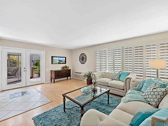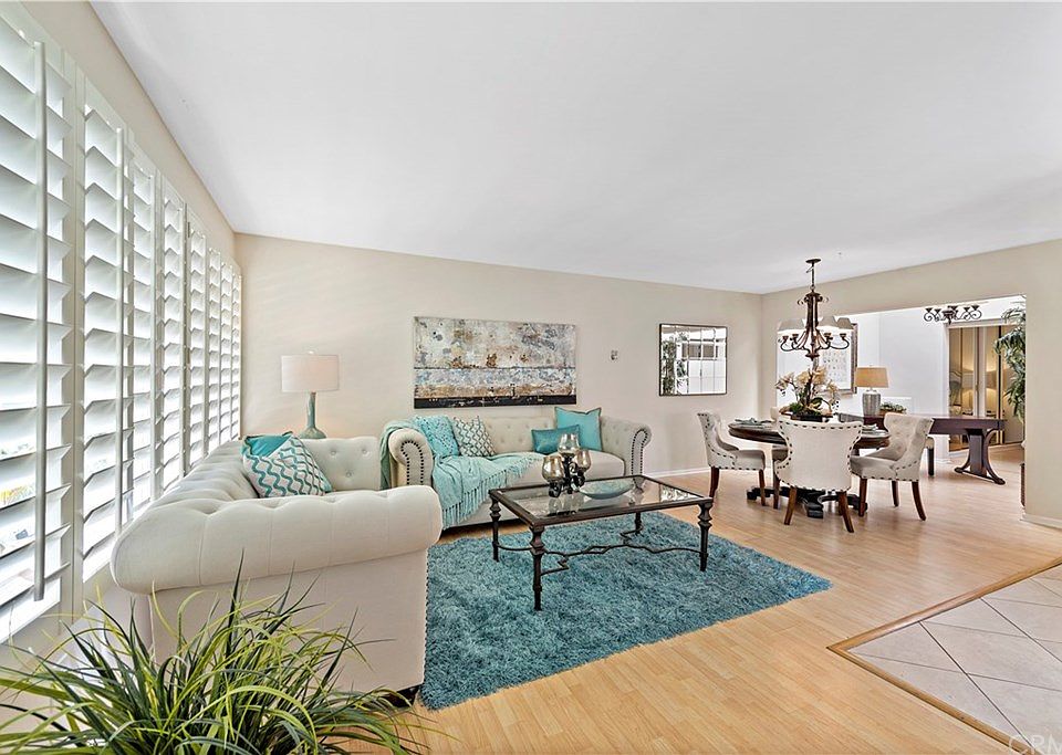 Relax and unwind in this upgraded Valencia 2 single level home. This highly desirable plan showcases many stylish appointments. It is light and airy and one of the most popular floorplans in the 55+ community of Laguna Woods Village. This property features newer dual pane windows, wood laminate flooring, upgraded electrical outlets and switches, granite tile counter-tops and white painted kitchen and bath cabinetry. The interior atrium has been enclosed to create a flex space that could serve as an office or an extension of the dining room. The master suite features an added window, convenient half bath and direct access to an enclosed sunroom. The kitchen displays a white oven, cooktop and microwave with a stainless-steel dishwasher and double door bottom drawer refrigerator. Unique tiled bathrooms, custom walk-in shower and washer dryer hookups round out the offerings of this beautiful home. Situated in a quiet and serene location with plenty of greenbelt space. Enjoy the highly sought-after community with an array of amenities including 27 holes of golf, 7 clubhouses, 5 swimming pools, 3 fitness centers and more than 250 social clubs. The shops and restaurants of Laguna Beach, Newport Beach and Irvine Spectrum are moments away.