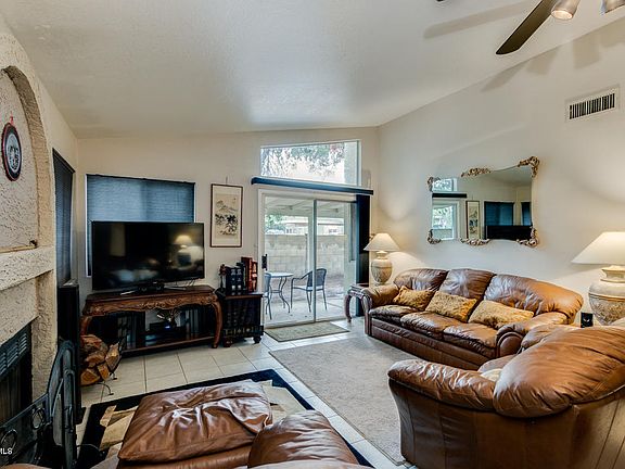 Beautiful, well-maintained home for sale in a great Chandler location! This two bedroom, two full bath home features vaulted ceilings, a cozy fireplace in the livingroom, and ceiling fans throughout. The kitchen offers a pass-through window into the dining area and livingroom so you can socialize or watch television while preparing meals. All appliances come with the home, including a Samsung stove, Frigidaire refrigerator, Bosch Ascenta dishwasher, and Whirlpool washer & dryer. The two-car garage, tile roof, north/south exposure, covered patio and mature shade trees in the back yard help keep you cooler during Arizona summers! The private back yard is adjacent to a wash, with no neighbors behind. Close to shopping, restaurants, and the freeways, this location is ideal. Come see it today!