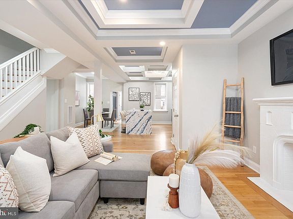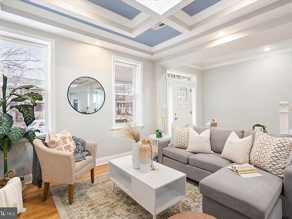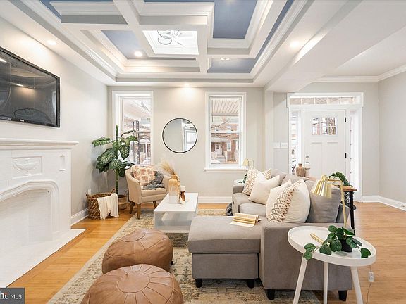 Stunning and elegantly remodeled 5BR/4.5BA Townhome located on a quiet street in Baltimore. Make your way to the covered front porch and open the door into three floors of newly renovated living spaces. The main floor boasts hardwood floors, coffered ceilings with a soft blue highlight, a faux fireplace, and the open floor plan new homeowners are seeking. Step into a bright open living room which is open to the gorgeous kitchen and dining area. The kitchen features plenty of cabinets with white uppers and navy blue lower, which together complement the gleaming granite countertops, a tiled backsplash, stainless steel appliances, a deep stainless sink set into an island with a waterfall edge and breakfast seating for three. The main floor is not complete without a half bath, laundry, and the first of five bedrooms featuring a walk-in closet and private bath with a walk-in shower. On the newly carpeted second floor are two sizable secondary bedrooms, a beautifully tiled full bath, and a large primary suite featuring a walk-in closet, a private full bath with a double sink vanity and a walk-in shower. In addition, the primary bedroom offers access to a private rooftop deck. The lower level is finished featuring the fifth bedroom, a full bath with walk-in shower, a large family room, an extra room ideal as a home office/gym or playroom, laundry and storage. From the lower level step outside to a yard offering tons of possibilities with a new fence and gate across the back. Move right into your new home and begin making memories. Imagine all this and in close proximity to shopping, restaurants, and commuter routes.