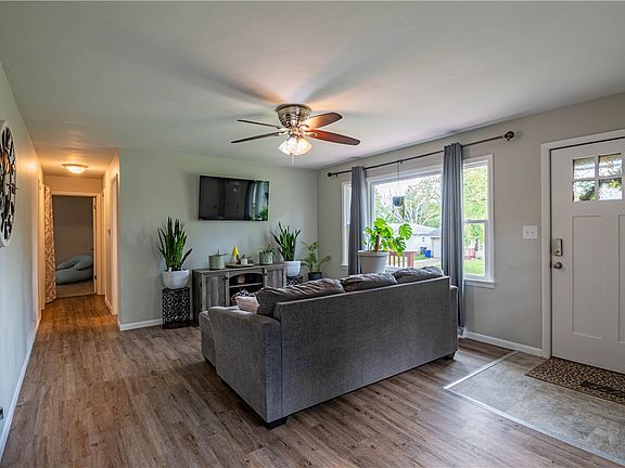 Whether you're in search of the perfect starter home or ready to downsize, this charming residence is tailor-made for you! Offering three bedrooms and one bathroom, it's the ideal size for cozy living. Inside, neutral tones and a spacious living room with a big picture window are perfect for comfortable living. The kitchen boasts plenty of cabinet space and comes with all appliances. Downstairs, you'll find the basement that has a bar area for you to unwind and relax. Step outside, and you have fresh landscaping and a fenced backyard. Other updates include: replacement windows throughout, new wiring in the basement and garage, refinished vanity, and more! Call and schedule a showing today!