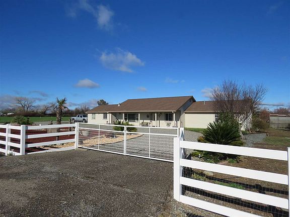 Very well kept custom country home on 5 usable acres in El Camino irrigation district. Spacious vaulted Great room with gas fireplace and lots of light opens to charming kitchen with tile counter tops, breakfast bar and dining area. Bedrooms include Master suite with walk in closet, garden tub and stall shower, plus two additional roomy bedrooms with large closets. Double car garage is attached by breezeway, and back patio is covered for year round entertaining. Storage sheds and low maintenance landscaping complete this peaceful country ranchette. Bring your livestock and enjoy.!!!