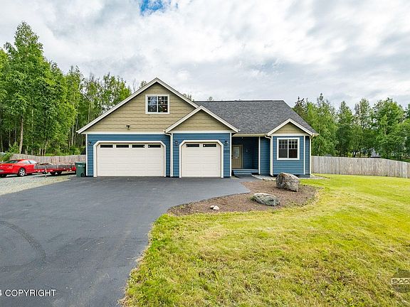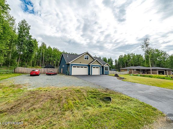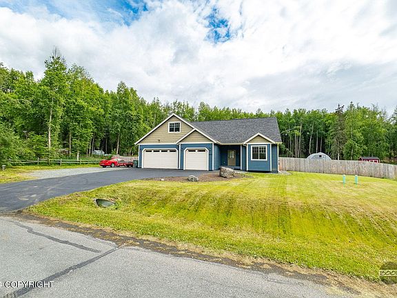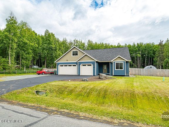 A rare opportunity to own your own mini farm where there is ample room to grow your own food, or raise chickens! With the remarkable flexibility it offers to potential buyers, this one of a kind property presents a fully fenced rear yard, designated garden areas, huge green house, expansive chicken coop, RV parking with ample storage for boats, trailers, or any outdoor Alaskan toy you might needroom for! The custom ranch home features a vaulted great room with wood burning fireplace, south facing wall of windows, and laminate flooring throughout the home. Custom country kitchen boats full extension, soft closing cabinets, stainless steel Bosch appliances consisting of two wall ovens and a gas cook-top. Master en-suite shows off with coffered ceilings, large walk-through closet, dual lavs, and huge walk-in shower! Perfect separation of space with two spacious bedrooms, hall bath, and laundry center all on the opposite side of the house. This home provides everything you could ask for and only a short distance to the Glenn Highway for an easy commute time to JBER or downtown Anchorage.