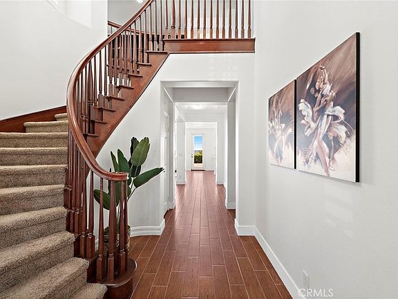This beautiful home offers sweeping views of hills, city lights, and Lake Mission Viejo. The two-story entry leads to a formal living and dining room, while the fully renovated gourmet kitchen boasts a large island, double oven, Bosch dishwasher, and a breakfast nook with backyard access. The backyard is perfect for entertaining, with a covered patio, BBQ bar, and incredible views. The spacious family room features a fireplace to get cozy next to while watching the sunset and the main floor includes a bedroom, full bath, and laundry room. Enjoy your master suite upstairs which offers a private deck with breathtaking views, a luxurious bath with a soaking tub, walk-in shower, and dual closets. This home combines style, comfort, and convenience. Don’t miss this rare opportunity!