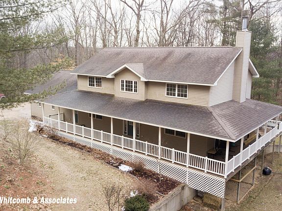 Explore nature's beauty here on 11.74 private wooded acres, complete with a meandering creek! This approx. 3,592 sq. ft. classic 2 story with wraparound porch is quite the find! The generously-sized kitchen with snack bar flows nicely to the living room & family room with a wood burning fireplace! The formal dining area, cozy office/homework room, large mudroom & half bath round out the main level. The upper level includes a spacious master w/ensuite and 3 addt'l bedrooms, laundry, & double sinkvanity in the shared bath. This home is tucked far-off the road but has natural gas! The walkout lower level includes a large rec room, lots of storage, & bathroom area that's ready to be finished! Move-in ready! Just a few minutes from US131/Pierson exit makes for an easy commute to Grand Rapids!