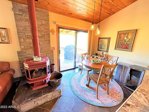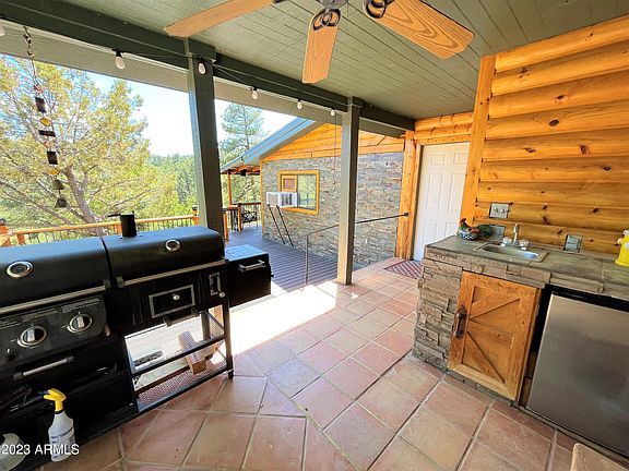 Looking for the perfect secluded one bedroom cabin nestled in the tall pines of Crown King? This one is a beauty! Situated on a gated 2 acre parcel with water, electric & septic. This little home is both efficient & private. Great views from the wrap around deck. There is lots of parking plus a huge barn with a loft that's perfect for ATV's. Kitchen features beautiful hickory cabinetry with slate & granite counters plus an island. Bedroom has large walk in closet, access to deck and lovely bathroom. Outdoor kitchen on a covered deck is perfect for Crown King's four seasons. Cozy wood stove keeps you toasty in the winter. There is a lot of quality wrapped up in this little get-away cabin. Lots of storage, including two sheds. A short distance from Main St, yet feels very secluded.