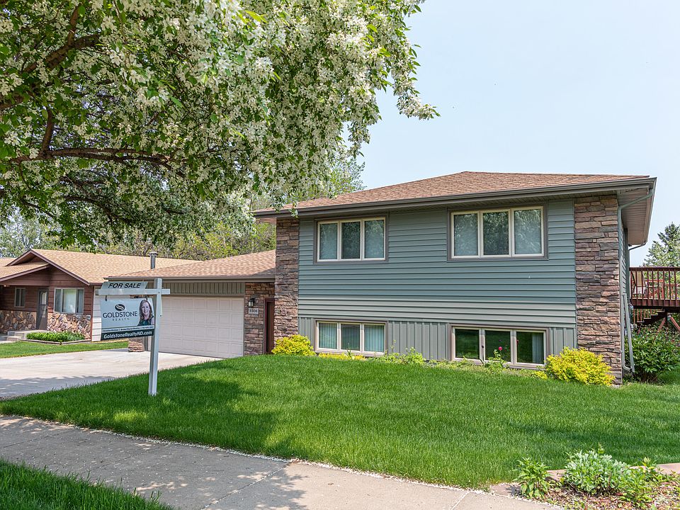 Beautiful split entry home located in SE Mandan! This great layout features an open plan living room, dining room, and kitchen all upstairs! Living room features a beautiful wood burning fireplace, and large windows bringing in natural light. Also on the upper level are 2 bedrooms and a full bathroom with double vanity and laundry! Downstairs in the basement you find a family room with a gas fireplace, an office with a door leading out to the patio, and a master suite with a full bathroom and a walk in closet. 2 stall attached garage, and a beautiful backyard taht features a large deck, a patio and a fireplace! This yard is like a park! The exterior upgrades gives this home so much appeal! It's a great home in SE Mandan! Come see this home today!