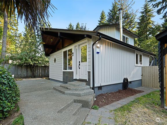 Cute, Unique, and Cozy! Live the Palmer Lake vacation life year round or part-time in this compact but functional 3 bedroom home on a 1/4 acre. Roof new in 2021. Easy care laminate flooring throughout except main floor bedrooms which have hardwood. Kitchen has quartz countertops and stainless steel appliances. Vaulted pine ceiling and 2 skylights keep the main living area light and bright. Living room has wood burning stove. Upstairs bedroom accessed by interior and exterior staircases. Security system and portable air conditioner. Palmer Lake is the best neighborhood to live in! Swimming, fishing, playground with security cameras and lights, fenced dog area and more. Only 30 mins away from Gig Harbor and 45 from Port Orchard.