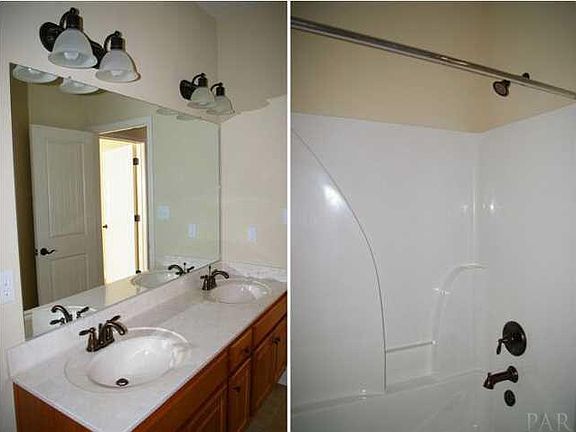 This new brick home in Cantonment is the Sedona plan. It is a great new home with all the bells and whistles. It includes a brick exterior, smooth ceilings, beaded board interior doors, Low E vinyl windows with blinds and dimensional shingles. Beautiful wood cabinets feature granite countertops with a pull out drawer feature, crown mold and installed hardware, Stainless Sears Kenmore appliances to include a built in Microhood and garbage disposal along with a smooth top range and dishwasher. An upgraded kitchen faucet is in place. The premium lot is located near the wonderful community park on a nice sodded lot. With details such as tray ceilings, pantry in the kitchen, spacious living areas, covered patio, and towel bar and tissue holders in the large master bath this home is a must see. Picture frame molding is featured along with recessed lighting. The master bath features a separate shower and double vanities. Moen oil rubbed bronze fixtures are installed in the baths. A garage door opener is standard in this series of homes. Beautiful colors have been chosen but an immediate contract may allow for some changes. Photos will be added as we progress.