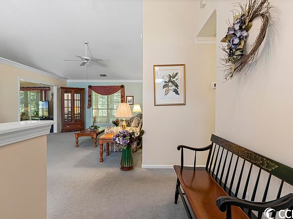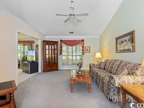 Welcome home to this beautiful 3 bedroom/2 bath home with a 2-car garage in Woodlake Village - a 55+ community that offers a clubhouse, outdoor pool, library, tennis, pickleball, shuffleboard courts and a golf cart ride to the beach! As you enter the home, you have a spacious formal dining room and living room. Off to the left is the kitchen with a cozy breakfast nook perfect for those less formal meals. The den off the kitchen is a place to watch TV and relax. Truly take the time to enjoy the Carolina room with a beautiful view of the backyard. The bedrooms are all on the right side of the home. The spacious master bedroom, walk in shower, garden tub and walk in closet. Two additional spacious bedrooms and a shared bath. You have a separate laundry room as well! This is a wonderful home, well cared for and just needs some cosmetic updating. All this and on a cul-de-sac lot! This community is very active and close to shopping, restaurants, grocery stores and medical facilities. This home is a must see! Square footage is approximate and not guaranteed. Buyer is responsible for verification.