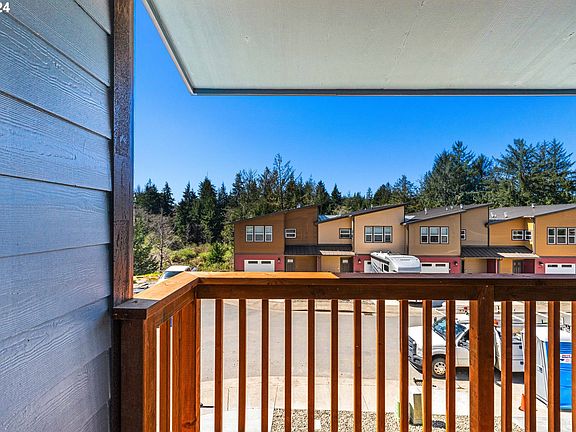 Don't Miss This BRAND NEW (End Unit) Townhome in Brookside Estates Subdivision! Located on the far left end of the subdivision this end unit has so much to offer. It's a 2 bedroom with 2 and 1/2 baths on 2 levels. There are 2 options for entering the lower level of the home. The one car oversized garage has a door into the entry area or you can enter thru the front door. As you come thru the front door there is a nice entry space, the entry area leads down the hallway to the laundry room, garage access, the lower level bedroom or the outside covered deck/patio space. Going up the stairs you enter the main living level! This boasts high vaulted ceilings, large open great room with beautiful kitchen, dining area and living room, balcony on the front, 1/2 bathroom and primary suite with walk-in closet and bathroom with heated tile floors & a walk-in tiled shower. The primary suite is a good size, has vaulted ceilings, and a private balcony. The kitchen has white shaker cabinets, gas stainless steel cookstove, stainless refrigerator with water & ice, built-in microwave & dishwasher and quartz counter tops. Additional amenity includes a tankless gas hot water heater. These Townhomes are light and bright with lots of windows and sliding doors to the balconies. They have NO maintenance yard spaces and nice concrete parking areas outside of the garage. Located down the street from the North Bend Medical Center and Bay Area Hospital, these homes have a perfect central location. WATCH THE VIDEO TOUR!! Then call for a showing today!!