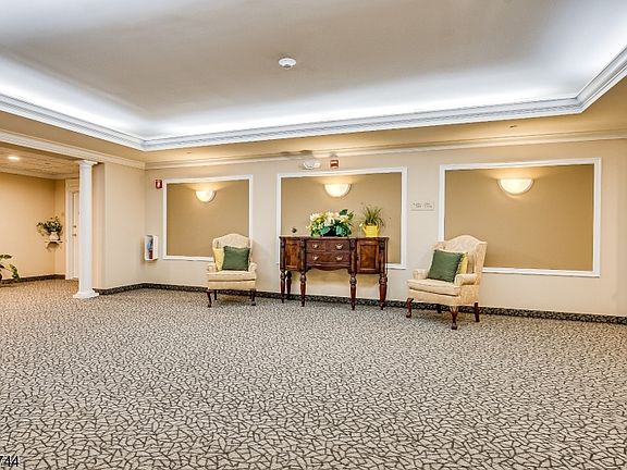 This lovely well-maintained top floor unit is nestled on a private cul-de-sac street and provides incredible views of the natural surroundings. This unit boasts tray ceilings, wood floor entry way, large open dining room/living room area and a separate den. There is a brand new SS refrigerator in the eat-in kitchen which also features under cabinet task lighting. Off the kitchen is a spacious laundry room with its own utility tub. The newer sliders in the living room provide entry to the large balcony and beautiful views. In the large primary en-suite is a double sink vanity, linen closet, large walk-in closet and separate water closet. Just off the second bedroom is a second full bathroom that also has its own linen closet. New HVAC installed in 2023! The unit is conveniently close to the elevator; and there are two separate storage rooms - on the balcony and the other just down the hall from the unit (#30). Two assigned parking spots (#39 and #53). The Somerset Run 55+ community has a 25,000 sf clubhouse with indoor and outdoor pools, ballroom, exercise room with locker rooms and sauna, art room, billiards, and plenty of space for cards and mahjong. Join the many clubs and organizations and attend the many activities that the community offers. Minutes to major highways, local restaurants, county golf courses and parks.