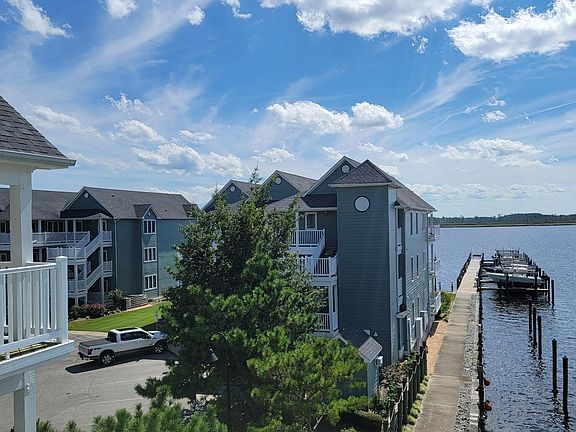 Pristine 3rd floor, waterfront condo with fantastic water views in the sought-after Day Beacon Complex. 2 deep water deeded boat slips in the marina convey, one with a lift and the second is perfect for a boat with a wider beam. Sit on your private deck overlooking the water and watch the yachts dock. The sunsets are extraordinary from this beautiful unit. Brand new upgraded primary bath with gorgeous walk-in shower and custom cabinetry. The lovely home has soft relaxing colors, nice beadboard and two-bedroom suites with their own baths. Plantation shutters and an open floor plan allows for great entertaining in the dining area with breakfast bar opening to the kitchen and great room. Sliding glass doors from the owners suite and great room allow for easy access to the deck. This unique complex of only 36 units share a pavilion and BBQ area and a pool complete with bathrooms and shower. Located in the heart of downtown Belhaven where restaurants and shopping are a stone's throw away. Join this special community to enjoy a slower pace of life and a waterfront lifestyle. Fishing, boating, and crabbing are in your backyard. Beaches are just a 1 1/2 away.